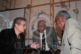 MÉXICO, D.F.17ABRIL2007.-En la galería Metropolitana de la UAM, se presentó el libro "Diego Rivera, luces y sombras", donde la escritora Raquel Tibol, narra facetas de la vida del artista. Estuvo acompañada por Eraclio Zepeda y Gerardo Unzueta. FOTO JEFTÉ ARGUELLO/CUARTOSCURO.COM