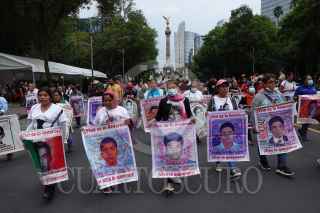 CIUDAD DE MÉXICO, 26MAYO2023.- En el marco del noveno aniversario de la desaparición forzada de los 43 normalistas de Ayotzinapa, padres y madres de familia, organizaciones sociales y estudiantes normalistas marcharon del Ángel de la Independencia al Zócalo para exigir la aparición con vida de sus compañeros. Afirmaron que no han tenido una respuesta contundente del gobierno obradorista y qué hasta que eso no la reciban seguirán pidiendo la presentación con vida. FOTO: GALO CAÑAS/CUARTOSCURO.COM