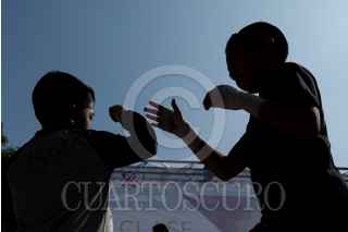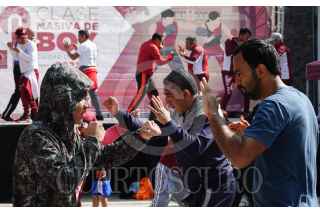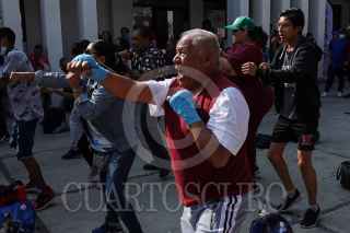 CIUDAD DE MÉXICO, 27MAYO2023.- El Instituto del Deporte de la Ciudad de México y el programa PILARES encabezaron el entrenamiento de cara a la segunda edición de la Clase Masiva de Box en el Zócalo capitalino. El ejercicio estuvo dirigido por el ex campeón de Peso Gallo y Peso Pluma, Rafael Márquez. FOTO: GALO CAÑAS/CUARTOSCURO.COM
