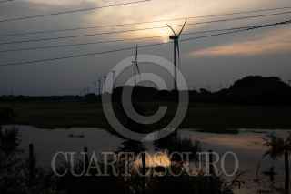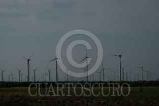 JUCHITÁN DE ZARAGOZA, OAXACA, 27MAYO2023.- En 2019 se inauguró en la región el Parque Eólico más grande de Latinoamérica con 132 generadores de energía eólica, hoy en el Istmo de Tehuantepec existen 32 Parques eólicos de diferentes empresas extranjeras que han comprado tierras a bajos costosa pobladores locales, hoy son miles de hectáreas que albergan estos gigantescos parques generadores de energía que después es exportada por estas empresas. FOTO: ISABEL MATEOS /CUARTOSCURO.COM