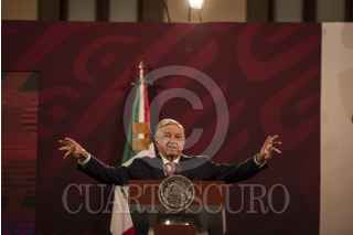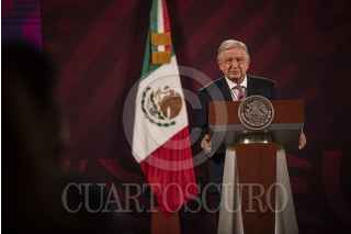 CIUDAD DE MÉXICO, 29MAYO2023.- El presidente de la República, Andres Manuel López Obrador, durante la conferencia matutina diaria. Como cada lunes, la conferencia inició con una exposición sobre los pormenores en los avances del proyecto Tren Maya. FOTO: PEDRO ANZA /CUARTOSCURO.COM
