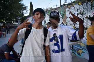 CHILPANCINGO, GUERRERO, 29MAYO023.- La falta de espacios, oportunidades, la tipificación, la falta de apoyos, son parte del proceso del crecimiento de los jóvenes que se dedican a cualquiera de los elementos y disciplinas del Hip-Hop, señalan MC’s, por lo que se dijeron agradecidos de que las autoridades gubernamentales puedan seguir haciendo eventos para introducir a más jóvenes. Ayer por la tarde, en el interior del Parque Skate de Chilpancingo, se realizó el primer encuentro ‘Hip-Hop’, ahí se llevo a cabo un conversatorio con exponentes locales, estatales y nacionales, quienes también mostraron parte de su arte en las rimas al finalizar este festival urbano. Durante el conversatorio señalaron que este 2023 se conmemoran los 50 años de la creación de esta cultura urbana. Este evento se da en el marco de la ‘Semana Mundial de Apreciación del Hip-Hop’, teniendo como enfoque principal de este año a los MC’s, por lo que Kukulkán Sonido convoco a un panel donde estuvieron presentes los miembros de ‘Anahuak Zulu’ de Ciudad Neza, Doble G, Zuluking Tonatiuh y KLtron, de Unión Hip-Hop Iguala (UHHI), Soatl y Mory, además de Mc DM de Acapulco (mejor conocido como ‘El Negro de la Basura’). FOTO: DASSAEV TÉLLEZ ADAME/CUARTOSCURO.COM