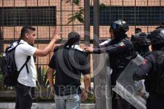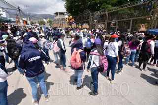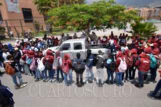 CHILPANCINGO, GUERRERO, 29MAYO2023.- Integrantes del Frente Unido de Normales Públicas del Estado de Guerrero (FUNPEG), constituida por siete normales de Guerrero, marcharon y cierran los accesos al Recinto Oficial del Poder Ejecutivo (Palacio de Gobierno), ante el incumplimiento de acuerdos; niegan que estén pidiendo apoyos para clausuras. Cientos de normalistas en Chilpancingo, marcharon para reclamar la falta de entrega de material didáctico para las academias de todos los grados; entre sus demandas también exigen el tema de garantía de plazas para la academia de cuarto grado, que está a punto de egresar. Al llegar al Recinto Oficial del Poder Ejecutivo, los manifestantes cerraron todos los accesos para presionar a las autoridades a que den una respuesta favorable a la brevedad. FOTO: DASSAEV TÉLLEZ ADAME/CUARTOSCURO.COM