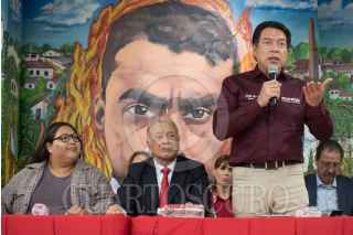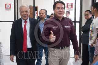 CIUDAD DE MÉXICO, 30MAYO2023.- Los dirigentes nacionales Mario Delgado (Morena) y Alberto Anaya (PT), y Citlalli Hernández, secretaria general de Morena, encabezaron conferencia en la que anunciaron el apoyo del Partido del Trabajo a Armando Guadiana, candidato a la gubernatura de Coahuila y la unidad de ambos partidos para el proceso electoral de 2024. FOTO: MARIO JASSO/CUARTOSCURO.COM