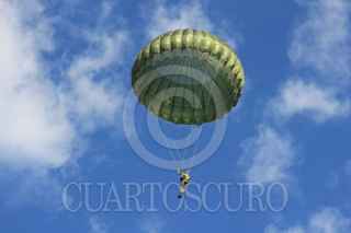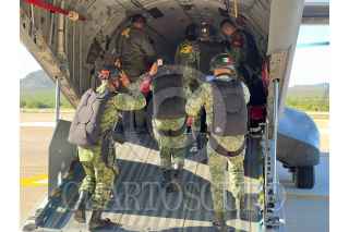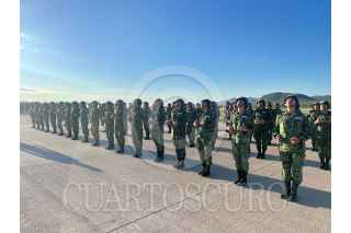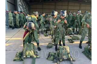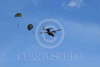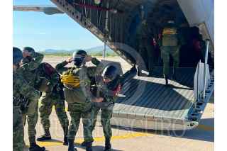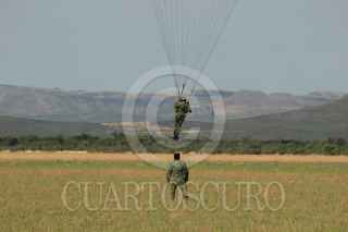 SANTA GERTRUDIS, CHIHUAHUA, 30MAYO2023.- Como parte de las actividades conmemorativas al “Bicentenario del Heroico Colegio Militar” y del programa de estudios de citado plantel educativo, del 21 al 26 de mayo del presente año, 300 cadetes (270 hombres y 30 mujeres) de cuarto año, realizaron prácticas de salto en paracaídas en el Centro Nacional de Adiestramiento del Ejército Mexicano, ubicado en Santa Gertrudis, Chihuahua, como fase final del curso básico de paracaidismo. Estas prácticas consistieron en realizar 5 saltos en paracaídas de cinta estática desde una aeronave de la Fuerza Aérea Mexicana en vuelo a una altura de 1500 pies (457 mts), con lo cual los cadetes se hacen acreedores a portar en el pecho sus alas de paracaidista. FOTO: SEDENA/CUARTOSCURO.COM