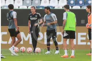 LEÓN, GUANAJUATO, 30MAYO2023.- Carlos Vela, jugador, y. Steve Cherundolo, técnico, de Los Angeles Football Club de la MLS, reconocieron el Estadio Nou Camp de León, previo a la final de Liga de Campeones Concacaf. FOTO: JORGE ORTEGA/CUARTOSCURO.CON