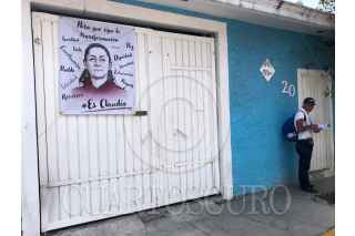CIUDAD DE MÉXICO, 31MAYO2023.- Con el lema "Para que siga la Transformación", el hashtag #Es claudia y la imagen de Claudia Sheinbaum, jefa de Gobierno, una lona cubre una parte de un zaguán en una casa en la alcaldía Iztapalapa. FOTO: GRACIELA LÓPEZ /CUARTOSCURO.COM