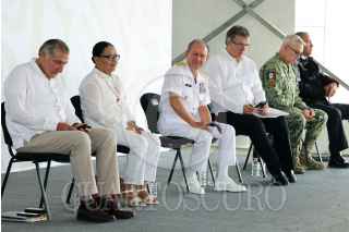 CIUDAD MADERO, TAMAULIPAS, 01JUNIO2023.- Andrés Manuel López Obrador, Presidente de México, y Americo Villareal, gobernador de Tamaulipas, encabezaron la mañanera realizada en la Primera Región Naval, en Ciudad Madero, Tamaulipas. FOTO: PRESIDENCIA/CUARTOSCURO.COM