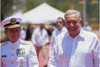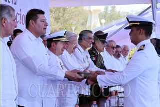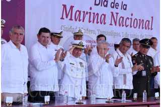 CIUDAD MADERO, TAMAULIPAS, 01JUNIO2023.- Andrés Manuel López Obrador, presidente de México, encabezó la ceremonia por el Día de la Marina Nacional. Lo acompañan Miguel Torruco Marqués, secretario de Turismo; Rocío Nahle García, secretaria de Energía; Rosa Icela Rodríguez Velázquez, secretaria de Seguridad y Protección Ciudadana; Adán Augusto López Hernández, secretario de Gobernación; Alejandro Armenta Mier, presidente de la mesa directiva del Senado de la República; José Rafael Ojeda, secretario de Marina; Américo Villarreal Anaya, gobernador Constitucional del Estado de Tamaulipas; Norberto Cortés Rodríguez, comandante de la Cuarta Región Militar; Marcelo Ebrard Casaubon, secretario de Relaciones Exteriores; Jorge Alcocer Varela, secretario de Salud; Jorge Nuño Lara, secretario de Infraestructura, Comunicaciones y Transportes; Víctor Manuel Villalobos Arámbula, secretario de Agricultura y Desarrollo Rural; Octavio Romero Oropeza, director general de Petróleos Mexicanos (PEMEX); Jesús Ramírez Cuevas, coordinador general de Comunicación Social y vocero del Gobierno de la República y Alejandro Svarch Pérez, titular de la Comisión Federal para la Protección contra Riesgos Sanitarios. FOTO: PRESIDENCIA/CUARTOSCURO.COM