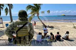 PLAYA DEL CARMEN, QUINTANA ROO, 01JUNIO2023.- Acto protocolario en conmemoración del “Día de la Marina Nacional” con el azul turquesa del mar de fondo en Playa del Carmen. FOTO: ELIZABETH RUIZ/CUARTOSCURO.COM