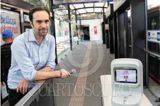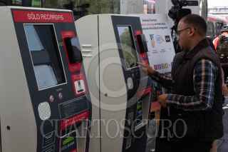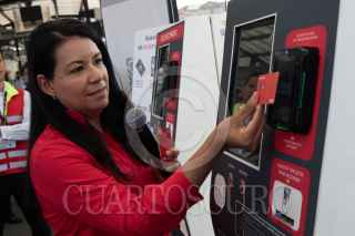 CIUDAD DE MÉXICO, 01JUNIO2023.- María del Rosario Castro Escorcia, directora del Metrobús, y Andrés Lajous, secretario de Movilidad, presentaron las nuevas formas de pagos en el Metrobús; ahora se podrá acceder a este transporte mediante pago directo con tarjeta bancaria, pagos a través del celular y relojes inteligentes. Estos avances tecnológicos ya operan en la Línea 5 y los funcionarios explicaron que se tuvo que renovar los módulos de recargas, así como, los lectores en los torniquetes. FOTO: MOISÉS PABLO/CUARTOSCURO.COM