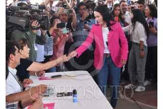 CUAUTITLÁN, ESTADO DE MÉXICO, 04JUNIO2023.- Alejandra del Moral, candidata a la gubernatura del Estado de México por la coalición PRI, PAN y PRD “Va por el Estado de México” emite su voto en la casilla correspondiente a la sección 837 ubicada en el fraccionamiento Jardínes del Alba. FOTO: MARIO JASSO/CUARTOSCURO.COM