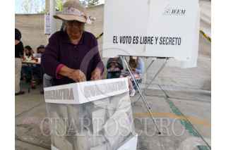 TOLUCA, ESTADO DE MÉXICO, 04JUNIO2023.- Aspectos de votación en la zona norte de Toluca, zona indígena Otomí, en donde se vive en calma la elección a Gobernadora del Estado de México y las urnas lucen casi llenas. FOTO: CRISANTA ESPINOSA AGUILAR /CUARTOSCURO.COM