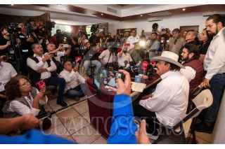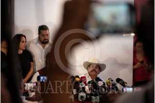 SALTILLO, COAHUILA, 04JUNIO2023.- Armando Guadiana, candidato a gobernador de Coahuila por morena, ofreció conferencia tras concluir la jornada electora, en la que señaló que esperara los resultados del PREP para tomar una postura respecto a la elección. FOTO: CUARTOSCURO.COM