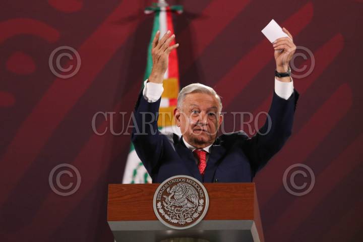 CIUDAD DE MÉXICO, 05JUNIO2023.- Andrés Manuel López Obrador, Presidente de México, encabezó la mañanera en Palacio Nacional. Ahí se trataron el ¿Quién es quién?, avances del Tren Maya y del seguimiento de las investigaciones del incendio de la Guardería ABC, en donde murieron 49 niños. FOTO: MOISÉS PABLO/CUARTOSCURO.CON