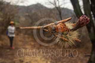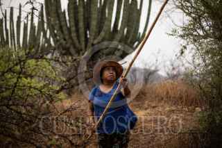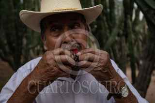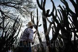 JALPA, ZACATECAS, 05JUNIO2023.- Cada año desde los primeros días del mes de mayo y hasta finales de junio, pobladores del municipio de Jalpa, al sur del estado, realizan la recolección de la pitaya. Fruto de una cactácea, de nombre científico Stenocereus queretaroensis y popularmente llamada pitayo o yagüarey, muy común en zonas semiáridas del centro y norte de México. Este fruto, atractivo por la variedad de colores, así como su fresca y peculiar pulpa, tiene sus raíces en las antiguas culturas, el nombre de pitaya se le dio en las Antillas, significa “fruto escamoso”, pero los antiguos pobladores la llamaban “coapetilla”, que quiere decir serpiente gruesa, refiriéndose a la apariencia de las ramas del pitayo. Desde la época prehispánica está planta, ha sido un complemento importante en la dieta de las comunidades originarias, considerada una de las fuentes más importantes de alimento; los investigadores mencionan que algunos le daban a la pitaya un uso ritual, pues además de alimento, lo consideraban regalo en celebraciones para hacer alianzas en la guerra y también se hacía una bebida a base de la fruta y el mezcal. Las primeras plantaciones comerciales de la pitaya comenzaron a finales del siglo XIV y una de las regiones importantes fue el estado de Jalisco y su frontera con Zacatecas. Don Antonio Solis, de 90 años, vive con su esposa Belen Salazar de 84 años y su hijo Juan Manuel Solis Salazar, reconocido pintor y quien regreso a su tierra después de haber pasado más de 40 años de los Estados Unidos. Además de disfrutar la tranquilidad y la belleza de su pueblo, El Zapotillo, don Antonio disfruta de la coapetilla; cuando era joven, ayudó a un hombre, para el que trabajaba cuidando ganado, a sembrar una huerta de pitayos junto a la iglesia: recuerda que fue 50 años atrás, la planta tarda entre 25 y 30 años en dar los primeros frutos. Cuando los pitayos ya eran adultos y comenzaba a dar los primeros frutos, don Antonio compró la pitayera, con ayuda de sus hijos. Él y su hijo Juan recolectan pitayas de todos los colores para consumo familiar y de amigos. Así disfrutan la temporada de calor, previo a las primeras lluvias. Este fruto se produce en los municipios del Cañón de Juchipila, entre ellos, Tabasco, Huanusco, Jalpa, Aozol, Juchipila, Moyahua y Mezquital del Oro. La mayoría de las personas que se dedican a la venta de este fruto es por tradición, herencia familiar de temporada, generando una estabilidad y apoyo económico para cientos de familias en el municipo. La comercialización se realiza principalmente en los jardines públicos de los municipios, mediante venta directa del productor, por encargo o del revendedor al consumidor. Desde las 5 de la mañana la familia Sandoval se prepara para salir como cientos de personas, a recolectar; a pesar de la pequeña brisa que se presenta al amanecer preparan sus canastos y suben a la camioneta, para minutos antes de las 6 de la mañana comenzar el viaje sobre un camino de terracería por las faldas del Cerro del Santuario, conocido antiguamente como Coahuitepetl. Treinta minutos hasta llegar a un ranchito, propiedad del tío de Aleida Rodríguez Sandoval; Aleida, acompañada de su madre Agustina y sus sobrinos Jenso y Anel, toman sus canastas y carrizos, se dividen en parejas y cada quien toma diferentes caminos, para poder revisar en conjunto alrededor de 60-70 pitayos, en una extensión de terreo de 50 hectáreas de monte, en la zona conocida como “Realito de Abajo”. Doña Agustina Sandoval de 69 años, aprendió de su padre como cosechar las pitayas, “el me enseño todo, sé cortar leña, ordeñar, sembrar, bajar pitayas, todos los trabajos del campo desde que era niña”. Así, también heredo a su hija el conocimiento de la pitaya. Es muy singular, Agustina observa el pitayo, poco a poco va caminando alrededor, identifica el color vivo del fruto, levanta su carrizo, lo gira un poco y listo, la coapetilla queda atrapada; el fruto desciende hasta el piso y poco a poco van juntado, una, dos, tres, todas las que hayan madurado ese día, este fruto hay que esperarlo, sola se muestra para ser cosechado. Después comienzan a limpiarlas con una varita que se encuentran en el lugar; las espinas son bastante amables, no son tan peligrosas como las de las tunas, ya limpias, se puede observar como la cascara parece una piel de serpiente. Muchas de las pitayas ya están picoteadas por pájaros, los cuales se dan un festin en la temporada; esas pitayas son comidas en el instante por doña Agustina y Aleida, ya que para la venta no tienen muy buena presentación. Así van recolectando hasta 70 pitayas de diferentes colores en cada canasto, que venderán entre 5 y 10 pesos cada una, dependerá del tamaño. Así es durante toda la mañana, las mujeres y su nieto bajan entre las 11 y 12 del día con alrededor de 300 frutas, generalmente la cosecha se realiza mi temprano, para no estar bajo los rayos del sol en las horas del día más fuerte. Algunas personas lo hacen en la madrugada. Durante dos meses, esta es la rutina de todos los días, es un trabajo familiar, tradicional y de gran ayuda económica para la población rural de esta región. La pitaya, además de consumirse cómo fruta fresca, se utiliza para obtener diversos alimentos, entre los que están el pan, mermeladas y bebidas refrescantes (nieve, agua y ponche), además de destilados. FOTO: ADOLFO VLADIMIR /CUARTOSCURO.COM