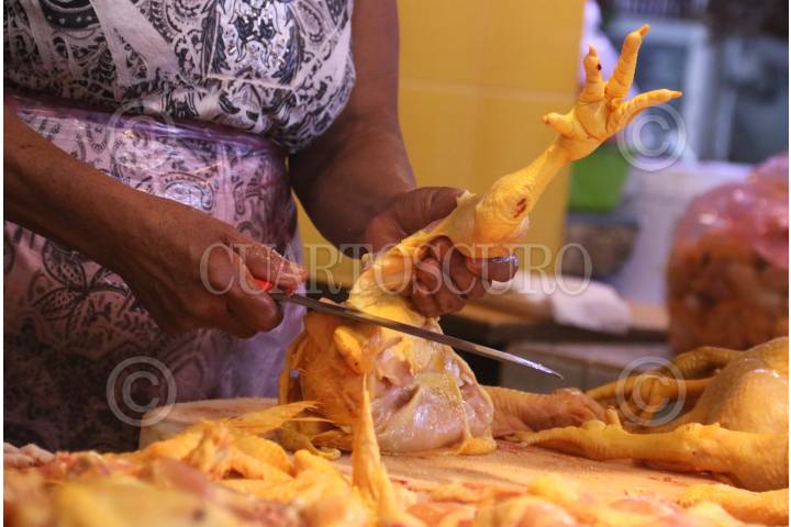 CUERNAVACA, MORELOS, 07JUNIO2023.- Una mujer destaza un pollo en el mercado Adolfo López Mateos, el precio de este alimento se ha mantenido sin alzas en las últimas semanas. FOTO: MARGARITO PÉREZ RETANA / CUARTOSCURO.COM