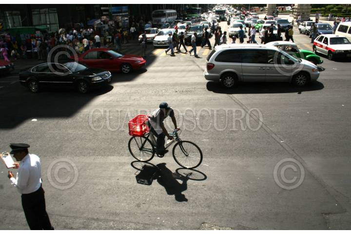 MÉXICO, D.F. 22ABRIL2007.- La bicicleta de un repartidor de carne permanece en la calle, donde los transeuntes la observan con indiferencia. FOTO: PAOLA HIDALGO/CUARTOSCURO.COM