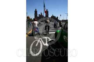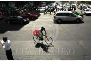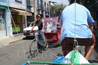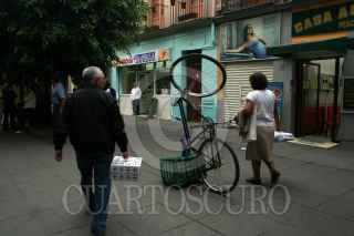 MÉXICO, D.F. 22ABRIL2007.- La bicicleta de un repartidor de carne permanece en la calle, donde los transeuntes la observan con indiferencia. FOTO: PAOLA HIDALGO/CUARTOSCURO.COM
