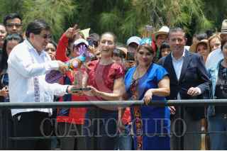CIUDAD DE MÉXICO, 08JUNIO2023.- Claudia Sheinbaum, jefa de gobierno de la capital, acudió a la Alcaldía Xochimilco para inaugurar el tramo 3 de Canal Nacional qué fue rehabilitado durante su administración, la mandataria local estuvo acompañada por los alcaldes de Iztapalapa, Xochimilco y Coyoacán, Clara Brugada, Juan Carlos Acosta y Giovani Gutiérrez, respectivamente. FOTO: DANIEL AUGUSTO /CUARTOSCURO.COM