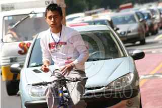 MÉXICO, D.F. 22ABRIL2007.- Recientemente en los últimos cinco años se ha tomado conciencia respecto hacia los ciclistas y proyectos como la construcción de "ciclopistas", asi lo demuestran, aunque la infraestructura de espacios confinados específicamente para esta actividad es un paso importante, el gran cambio lo marcaría una concientización de los derechos y obligaciones que tiene una persona que se sube en una bicicleta en esta ciudad por parte de el mismo y de los miles de automivilstas con los que a diario cohabitan en las vialidades. FOTO: PAOLA HIDALGO/CUARTOSCURO.COM