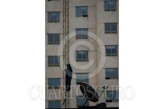 CIUDAD DE MÉXICO, 08JUNIO2023.- Un hombre trabaja en una antena colocada sobre uno de los edificios de Paseo de la Reforma. FOTO: GALO CAÑAS/CUARTOSCURO.COM