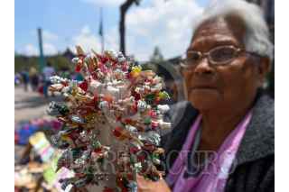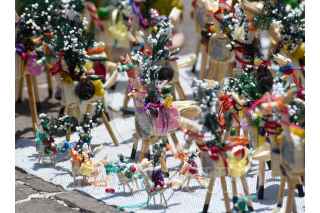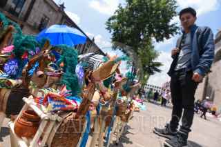 TOLUCA, ESTADO DE MÉXICO, 08JUNIO2023.- Artesanos del municipio de Lerma acudieron a la Catedral de Toluca para vender las tradicionales Mulitas durante la celebración de Corpus Christi, algunos expresaron tener bajas ventas, después de la pandemia por COVID-19 varios artesanos murieron y cada vez son menos los que se dedican a esta artesanía, esperan que esta tradición no se acabe. FOTO: CRISANTA ESPINOSA AGUILAR /CUARTOSCURO.COM