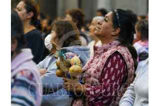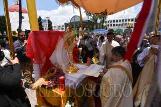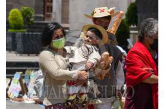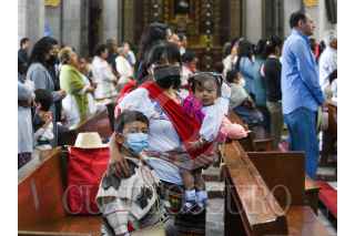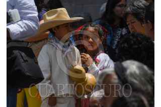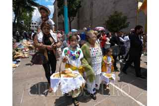 TOLUCA, ESTADO DE MÉXICO, 08JUNIO2023.- Adultos y niños acudieron a la Catedral de Toluca para escuchar misa por la celebración de Corpus Christi, algunos ataviados con ropa de manta, collares coloridos y cargando un chiquihuite. FOTO: CRISANTA ESPINOSA AGUILAR /CUARTOSCURO.COM