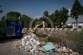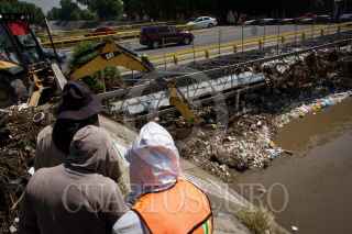 NAUCALPAN ESTADO DE MÉXICO, 08JUNIO2023.- Trabajadores del Municipio de Naucalpan realizaron labores de limpieza en el Río Hondo luego de que éste se desbordara debido a la basura acumulada y a la intensa lluvia del pasado miércoles. Dicho desbordamiento causó afectaciones en diversos puntos de la colonia El Conde en el Estado de México. FOTO: ROGELIO MORALES /CUARTOSCURO.COM
