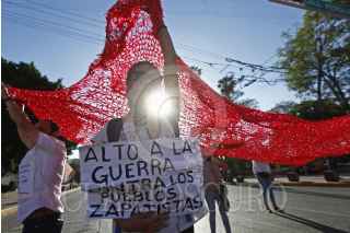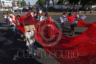 GUADALAJARA, JALISCO, 08JUNIO2023.- Un colectivo del cual se omitió el nombre por razones de seguridad, realizo un Flashmob a manera de protesta, para alzar la voz y pedir un alto a las agresiones contra las comunidades zapatistas del país, dicha actividad tuvo lugar sobre la avenida Juárez a su cruce con Calzada Federalismo en el centro de la ciudad. FOTO: FERNANDO CARRANZA GARCIA / CUARTOSCURO.COM