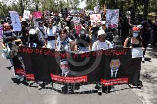 CIUDAD DE MEXICO, 09JUNIO2023.- Estudiantes de la Universidad Nacional Autónoma de México (UNAM) realizaron una marcha de "Los Bigotes" rumbo a Rectoría por el incumplimiento de su demanda para destituir a Mauricio de Jesús Suárez, director de la Facultad de Artes y Diseño por su presunta imposición de una recalendarización del semestre con clases a distancia. Además denuncian negligencia y desinterés de las autoridades universitarias ante el pliego petitorio de la asamblea estudiantil luego del paro que se mantiene en dicha Facultad desde el 15 de febrero. FOTO: MARIO JASSO/CUARTOSCURO.COM