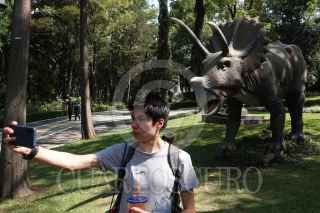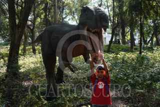 CIUDAD DE MÉXICO, 10JUNUO2023.- Capitalinos interactuaron con las esculturas de los dinosaurios de la exposición "Dinos en los Pinos", inaugurada esta tarde en el Centro Cultural Los Pinos. FOTO: GRACIELA LÓPEZ /CUARTOSCURO.COM