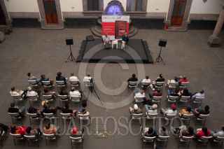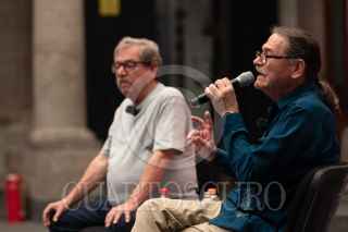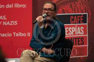 CIUDAD DE MÉXICO, 26MAYO2023.- Dieter Müller, escritor y autor de la obra y Paco Ignacio Taibo II, director Del fondo de Cultura Económica (FCE) durante la presentación del libro, Café, espías, amantes que se llevo a cabo en el Museo de la Ciudad. FOTO: GOBIERNO CDMX/CUARTOSCURO.COM