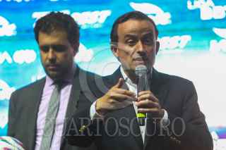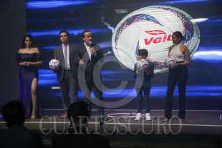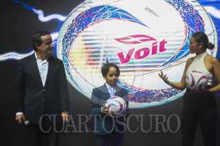 CIUDAD DE MÉXICO. 12JUNIO2023.- Presentación del balón Tempest de Voit con el se jugará la próxima temporada de la liga MX, Carlos Elizondo y Mikel Arriola y su hijo Santi encabezaron el evento. FOTO: VICTORIA VALTIERRA/CUARTOSCURO.COM