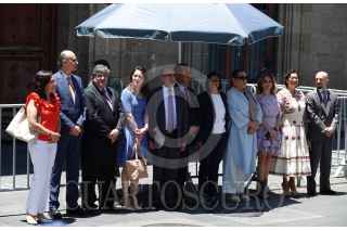 CIUDAD DE MÉXICO, 13JUNIO2023.- Las y los consejeros del Instituto Nacional Electoral (INE) acudieron a Palacio Nacional para sostener una reunión con el presidente Andrés Manuel López Obrador. Entre los asistentes destacaron: Jorge Montaño; Martín Faz; Claudia Zavala; Rita Bell; Jaime Rivera; Carla Astrid Humphrey; Arturo Castillo; la presidenta Guadalupe Taddei, y Uuc-kib Espadas Ancona. FOTO: GALO CAÑAS/CUARTOSCURO.COM