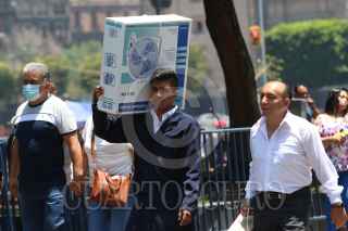 CIUDAD DE MÉXICO, 13JUNIO2023.- Continúa la ola de calor en la capital, por lo que ciudadanos salen con paraguas para mitigar el intenso sol, mientras que la venta de ventiladores ha ido en aumento. FOTO: MOISÉS PABLO/CUARTOSCURO.COM