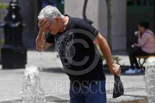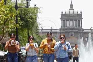 GUADALAJARA, JALISCO, 12JUNIO2023.- Las altas temperaturas en el área metropolitana continúan y orillan a las personas a tomar bebidas refrescantes, usar sombrilla por los fuertes rallos del sol así como refrescarse con una buena remojada de agua de las fuentes publicas, autoridades recomiendan mantenerse hidratados ya que se espera que las temperaturas incrementen en los próximos días. FOTO: FERNANDO CARRANZA GARCIA / CUARTOSCURO.COM