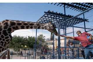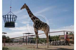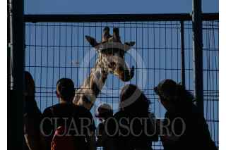 CIUDAD JUÁREZ, CHIHUAHUA, 14JUNIO2023.- Benito, una jirafa macho de 3 años en su espacio dentro del Parque Central. Este ejemplar llegó el pasado mes de mayo a esta frontera, sin embargo, activistas buscan trasladarlo a un mejor ya que señalan que el espacio en el que actualmente, esta es muy reducido y no le provee de una buena calidad de vida. FOTO: JUAN ORTEGA SOLÍS/CUARTOSCURO.COM