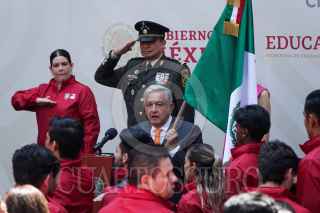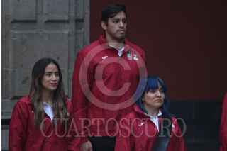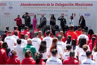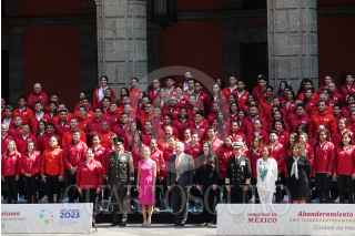 CIUDAD DE MÉXICO, 15JUNIO2023.- Andrés Manuel López Obrador, presidente de México, encabezó el abanderamiento de la Delegación Mexicana que participará en los XXIV Juegos Centroamericanos y del Caribe San Salvador 2023. El mandatario estuvo acompañado por: la atleta de tiro deportivo Alejandra Zavala; Luis Cresencio Sandoval, secretario de la Defensa Nacional;Claudia Sheinbaum, jefa de gobierno de la Ciudad de México; Ana Gabriela Guevara, titular de la Comisión Nacional del Deporte (CONADE); Rafael Ojeda Durán, secretario de Marina; Leticia Ramírez, secretaria de Educación, y María José Alcalá, presidenta del Comité Olímpico Mexicano. FOTO: GALO CAÑAS/CUARTOSCURO.COM