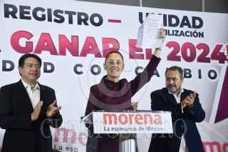 CIUDAD DE MÉXICO, 16JUNIO2023.- Claudia Sheinbaum, ex jefa de Gobierno, acudió a firmar el registro de precandidata de Morena para las elecciones de 2024. Estuvieron presentes: Mario Delgado, dirigente nacional de Morena; Citlalli Hernández, secretaria general de Morena; Álvaro Bracamonte, secretario técnico del Consejo Nacional de Morena y Alejandro Peña, secretario nacional de organización de Morena. FOTO: MARIO JASSO/CUARTOSCURO.COM