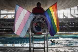 CIUDAD DE MÉXICO, 17JUNIO2023.- Decenas de participantes acudieron al Primer Encuentro Acuático LGBTTTIQ+ "Nadando con orgullo" realizado en la Alberca Olímpica “Francisco Márquez". FOTO: MARIO JASSO/CUARTOSCURO.COM