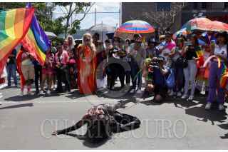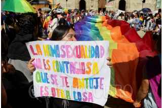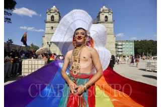 OAXACA, OAXACA, 18JUNIO2023.- Este domingo cientos de personas participaron en la III Marcha Caravana por el Orgullo LGBT+ en la ciudad de Oaxaca en torno al 28 de junio día internacional del orgullo LGBT. Durante el recorrido los manifestantes gritaron consignas, bailaron y cantaron para exigir respeto y no discriminación. FOTO CAROLINA JIMÉNEZ/CUARTOSCURO.COM