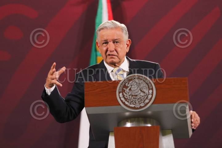CIUDAD DE MÉXICO, 19JUNIO2023.- Andrés Manuel López Obrador, Presidente de México, encabeza su mañanera en Palacio Nacional, en la cual hablo sobre los avances del Tren Maya. Lo acompañaron Maria Luisa Albores y Mara Lezama, entre otros funcionarios. FOTO: MOISÉS PABLO/CUARTOSCURO.COM