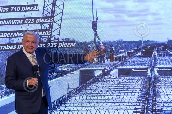 CIUDAD DE MÉXICO, 19JUNIO2023.- Andrés Manuel López Obrador, Presidente de México, encabeza su mañanera en Palacio Nacional, en la cual hablo sobre los avances del Tren Maya. Lo acompañaron Maria Luisa Albores y Mara Lezama, entre otros funcionarios. FOTO: MOISÉS PABLO/CUARTOSCURO.COM