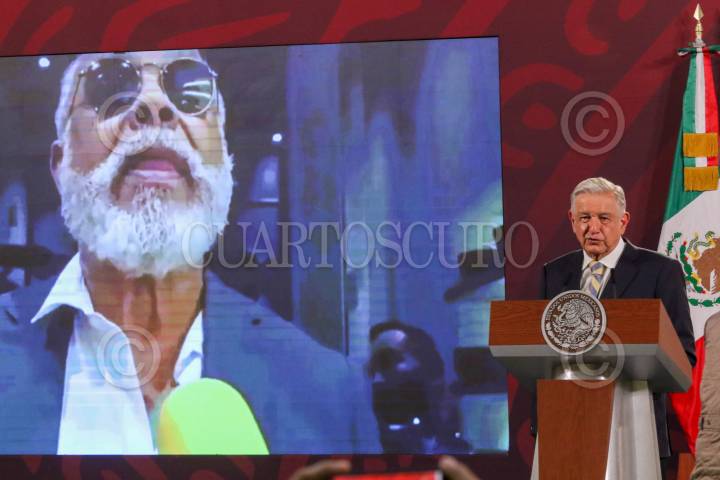CIUDAD DE MÉXICO, 19JUNIO2023.- Andrés Manuel López Obrador, Presidente de México, encabeza su mañanera en Palacio Nacional, en la cual hablo sobre los avances del Tren Maya. Lo acompañaron Maria Luisa Albores y Mara Lezama, entre otros funcionarios. FOTO: MOISÉS PABLO/CUARTOSCURO.COM