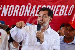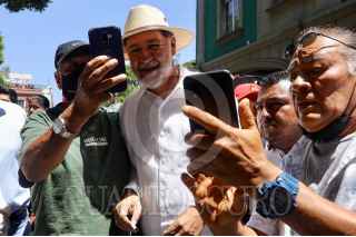 OAXACA, OAXACA, 19JUNIO2023.- Gerardo Fernández Noroña, aspirante a la candidatura por Morena para la elección presidencial de 2024, arribó al zócalo de la capital de Oaxaca en donde realizó un acercamiento con simpatizantes y militantes del Partido del Trabajo, y una firma de libros. Además tendrá otros eventos en la capital. FOTO: CAROLINA JIMÉNEZ/CUARTOSCURO CON