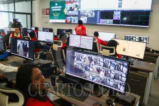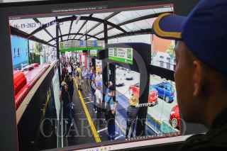 CIUDAD DE MÉXICO. 19JUNIO2023.- En el centro de monitoreo del Metrobús se realizó la supervisión y el festejo por el 18 aniversario de este medio de transporte público que se ha convertido en el segundo más utilizado en la Ciudad, el evento lo encabezó el jefe del Gobierno de la Ciudad, Martí Batres Guadarrama. FOTO: VICTORIA VALTIERRA/CUARTOSCURO.COM