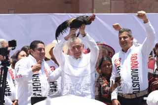 ZACATECAS, ZACATECAS, 20JUNIO20223.- Adán Augusto, secretario de Gobernación, encabezó una asamblea informativa en la capital zacatecana como parte de su gira para participar en la encuesta de Morena en la que se definirá quien será su candidato a la Presidencia a la República. En la imagen el tabasqueño sostiene un gallo de pelea. FOTO: PRENSA ADÁN AUGUSTO/CUARTOSCURO.COM