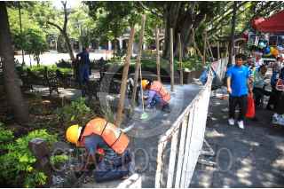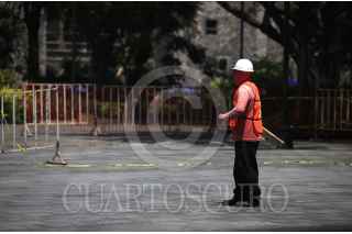 CUERNAVACA, MORELOS, 20MAYO2023.- Inician los trabajos de rehabilitación de la Plaza de Armas de Cuernavaca. El pasado 3 de mayo unas baldosas de la plaza se hundieron por lo que el gobierno estatal decidió cerrar la circulación por el lugar. Durante el gobierno del perredista Graco Ramírez se llevó a cabo la remodelación de la Plaza Central, la cual ahora sufre de averías propias de que no se les dio mantenimiento durante el gobierno del exfutbolista Cuauhtémoc Blanco Bravo. FOTO: MARGARITO PÉREZ RETANA / CUARTOSCURO.COM