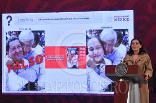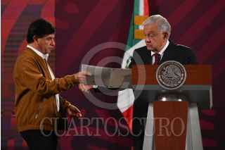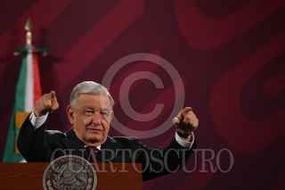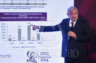 CIUDAD DE MÉXICO, 21JUNIO2023.-Andrés Manuel López Obrador, presidente de México, encabezó conferencia de prensa matutina en Palacio Nacional. Estuvo acompañado por: Elizabeth García Vilchis, directora de Redes de la Vocería de presidencia. FOTO: MARIO JASSO/CUARTOSCURO.COM